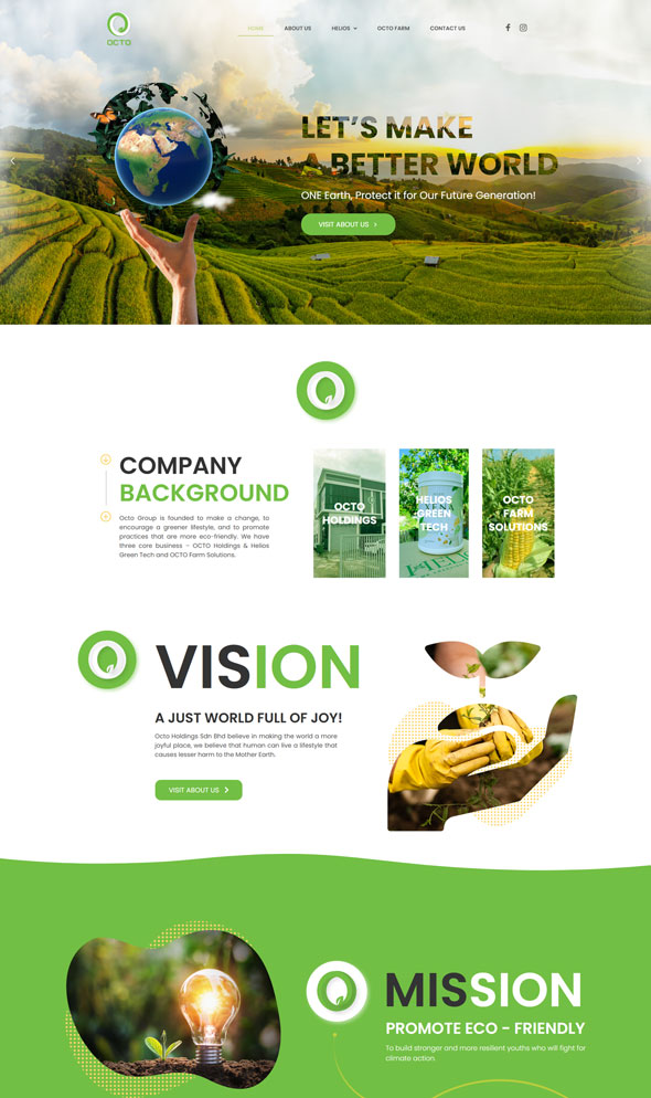 Bringing Octo Holdings to life online meant shaping a digital home for a brand with three distinct styles like green technology, organic products, and sustainable farming.